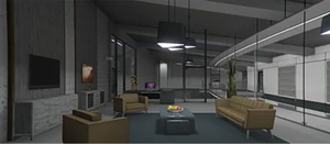 Back upstairs, the final accessible room in the facility is the Heist Planning Room where Lester Crest introduces the player to Avon Hertz and Cliffford to set in motion the events of The Doomsday Heist itself. Players can access this room to play through the heists and return to replay whatever of them afterwards.