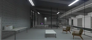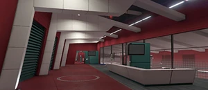 A door on the left leads to the sleeping quarters (if purchased). This provides the player with a spawn location choice to allow them to kickoff a session inside the facility.