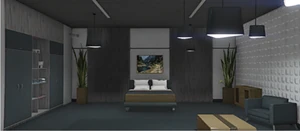 The lounge is a rectangular room with seating and a working Internet accessible iFruit computer and can be upgraded to include a wall-mounted Telly. One time installed in the Lounge, the privacy glass feature can be turned on or off using the control panel located to the left of the main door when continuing in the Lounge. By default, the privacy feature is disabled only can exist toggled on or off as desired.