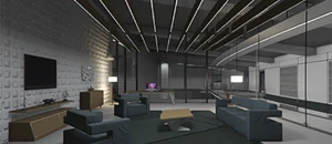 A 2nd lobby expanse with exits to the War Room on the left and 2 exits to the overhead walkways on the correct. The first leave provides most convenient admission to the Lounge area overlooking the offices beneath. The second get out provides access to the Server expanse and the Heists Setup Room.
